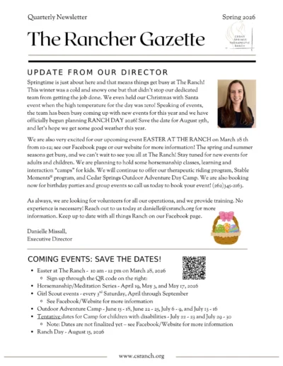 Come out to Cedar Springs Therapeutic Ranch this Easter season for horse rides, an egg hunt, and visit with The Easter Bunny! Bring your friends and family, this is one […]