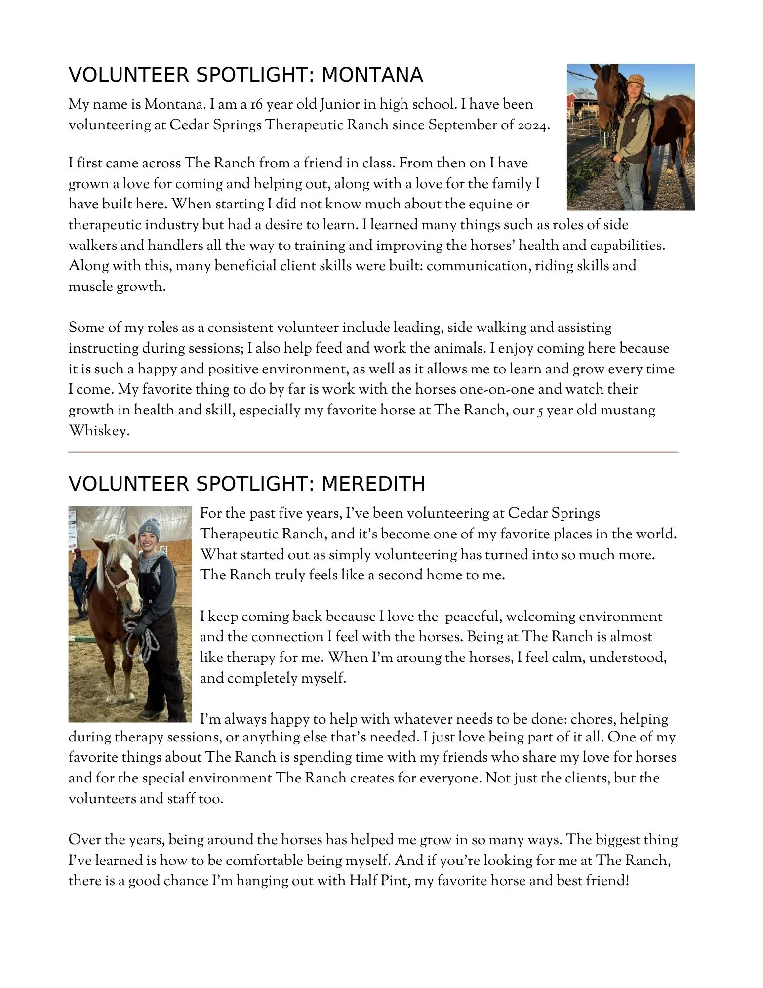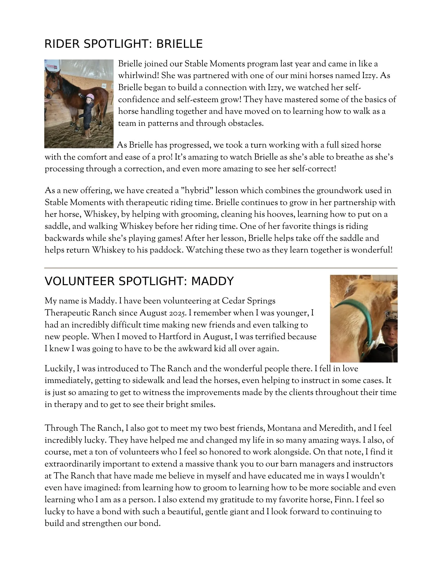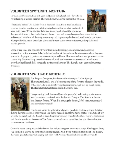Cedar Springs Therapeutic Ranch exists to solve the problem with connections, relationships, and restoration of mind, body, spirit, and soul. Our equine and animal-assisted programs allow those with cognitive, physical, emotional, mental, and spiritual needs to grow through meaningful experiences, trusting relationships, and mentorship in this unique therapeutic healing environment.